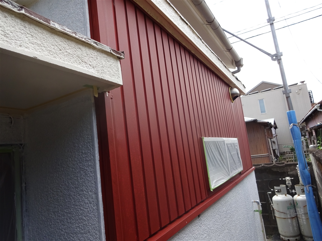 キッチンを改装してから、8年後にえいごのひろば大改装工事を実施することになりました。今回は外壁サイディングを貼りました。が、予算の関係で1Fの北側面は外壁塗装だけで済ませることに致しました。