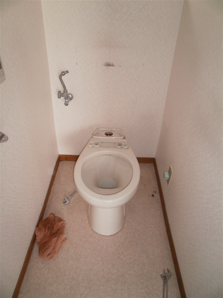 | 工事内容 | TOTO トイレ ピュアレストQR + 便座アプリコットF1A + トイレ裏化粧パネル貼り |