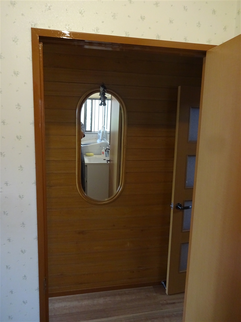 | 工事内容 | 脱衣場 扉取替え + 扉枠塗装 |