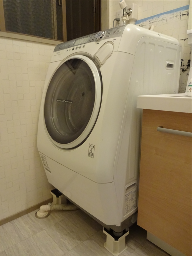 洗濯機を左へ少し移設 ⇒ 嵩上げ設置 ⇒ 洗濯機用給水栓取付