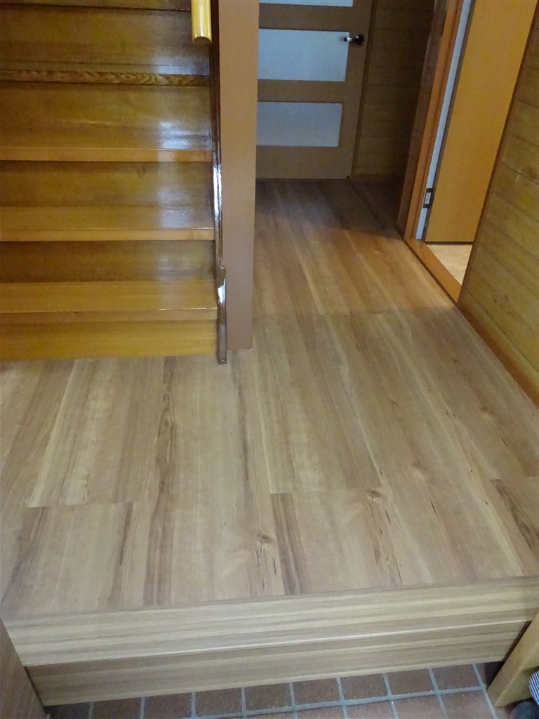 玄関をきれいにする際に、愛犬の脚の負担も考えてこのフロアにされました。