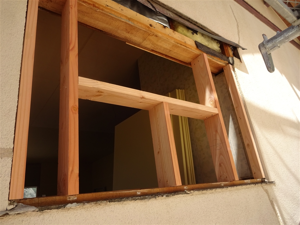 | 工事内容 | 既設窓撤去 ⇒ 窓サイズを小さくして設置 ⇒ 外壁サイディング貼り |