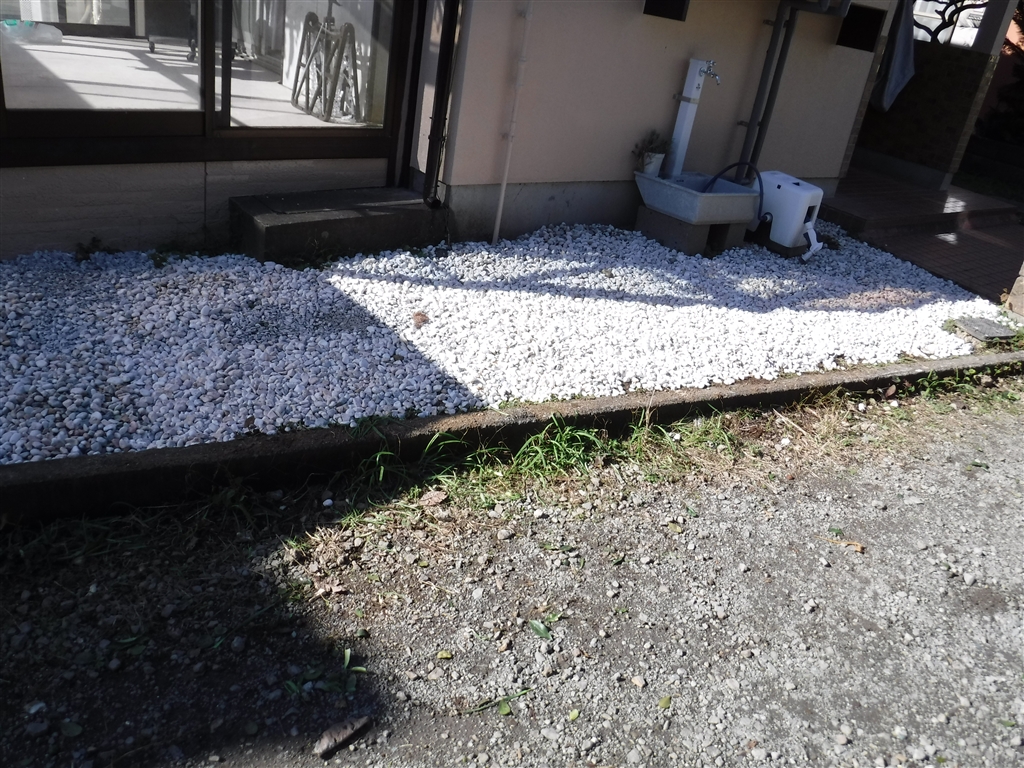 | 工事内容 | 家の周りの草木を伐採・撤去 ⇒ 砂利捲き |