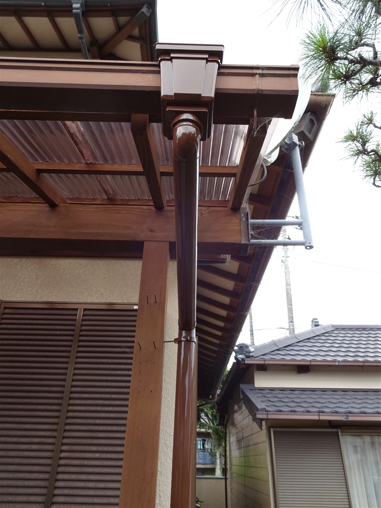 竪樋の劣化が目立つようになって、気になられて塗装することになりました。