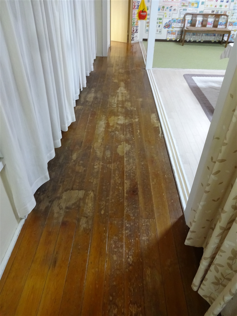 雨漏り補修の工事。いろいろと補修していこうと思います。 廊下 床補修工事