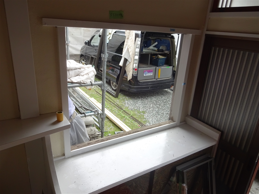 えいごのひろば 改装工事 玄関横 窓 内側から