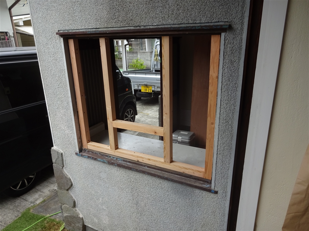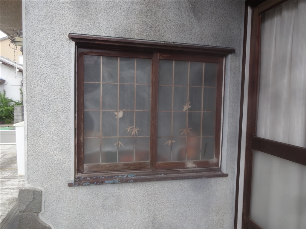52年前に祖父が建てたこの家を、10年前に譲り受けました。が・・・漏水が酷くて何度も補修を繰り返してきました。そんな中、この場所で6年前に英会話教室を妹が開くことになったので、ある程度は教室らしく改装工事を実施してきました。ところが・・・またしても30年前に増築した2Fのトイレからと、教室の廊下から雨漏りをしてくるようになりました。これはタマッたもんじゃありません。ただ、多くの方に来ていただいている教室なので、しっかりと補修することにしました。外装・内装共に英会話教室らしく改装していきます。当初、玄関横の窓は無くす方向で話が進んでおりました。が、暗い感じの英会話教室にしたくはないので、小さいFIX窓を取付けることを思いつきました。
