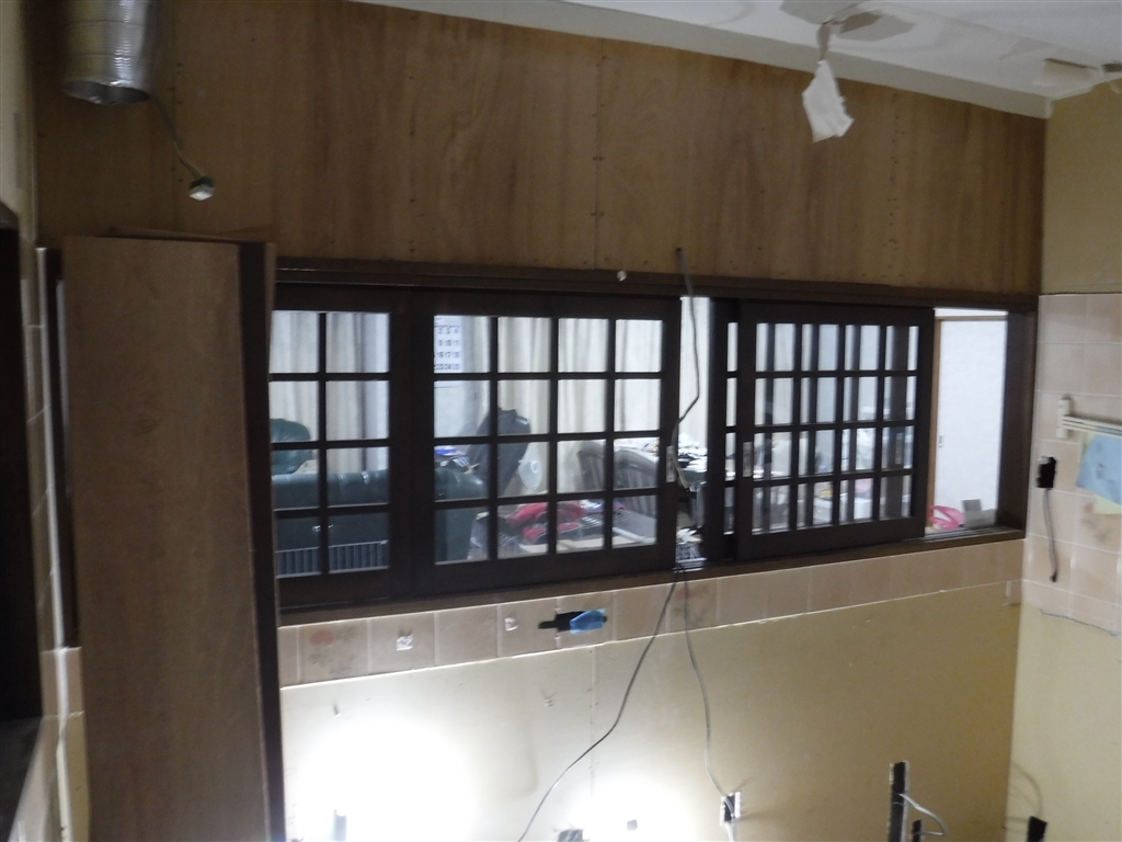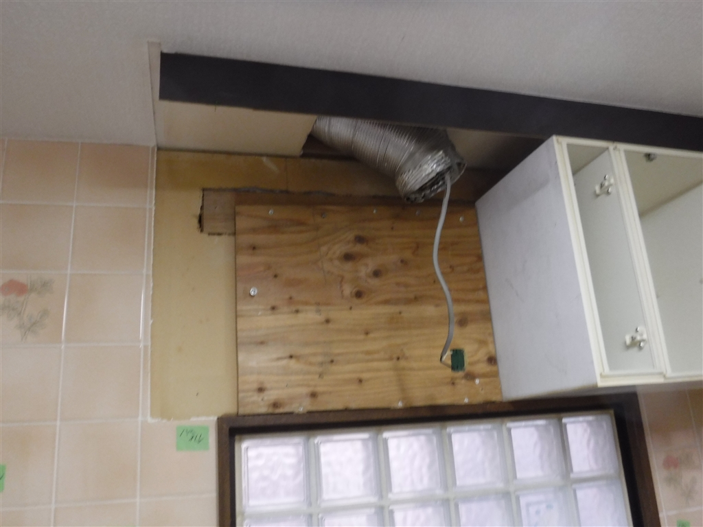 L型キッチンの時に取付けたあった、レンジフード部分もパネルを貼って補修しました。