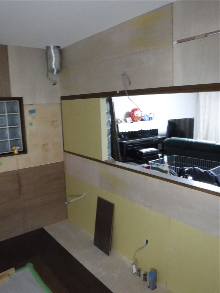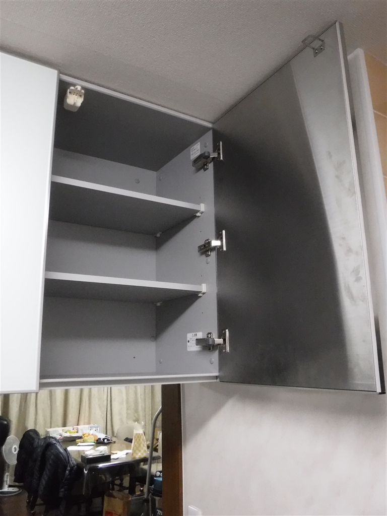 吊戸の高さが700になったので、裏側の見える部分はパネルを貼りました。
