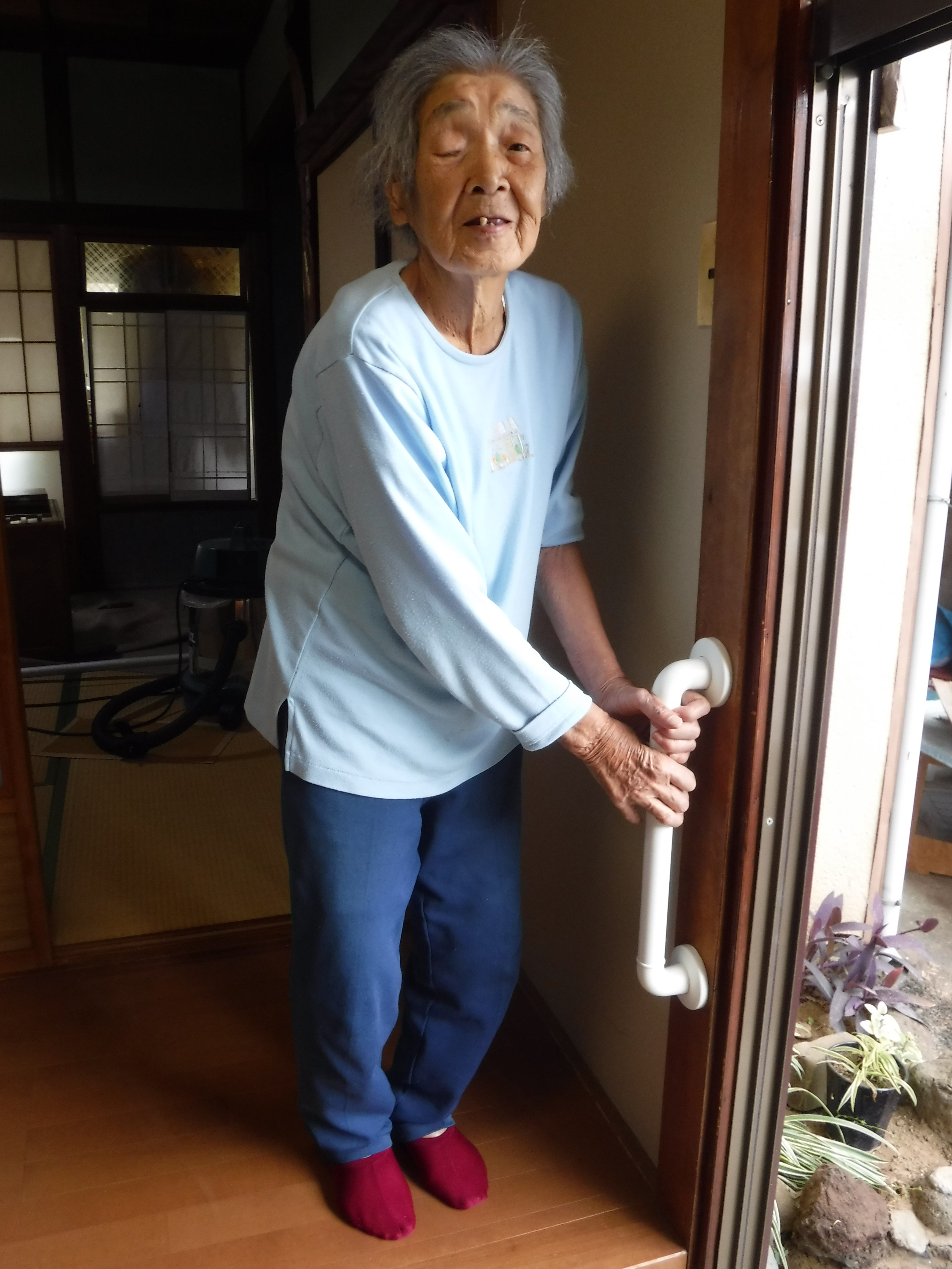 とても廊下が歩くと(乗ると)凹みます。毎日不安でしょうがないです。これを補修していただけませんか?玄関の上がり下りが大変になってきたので、手すりも取付けてください。