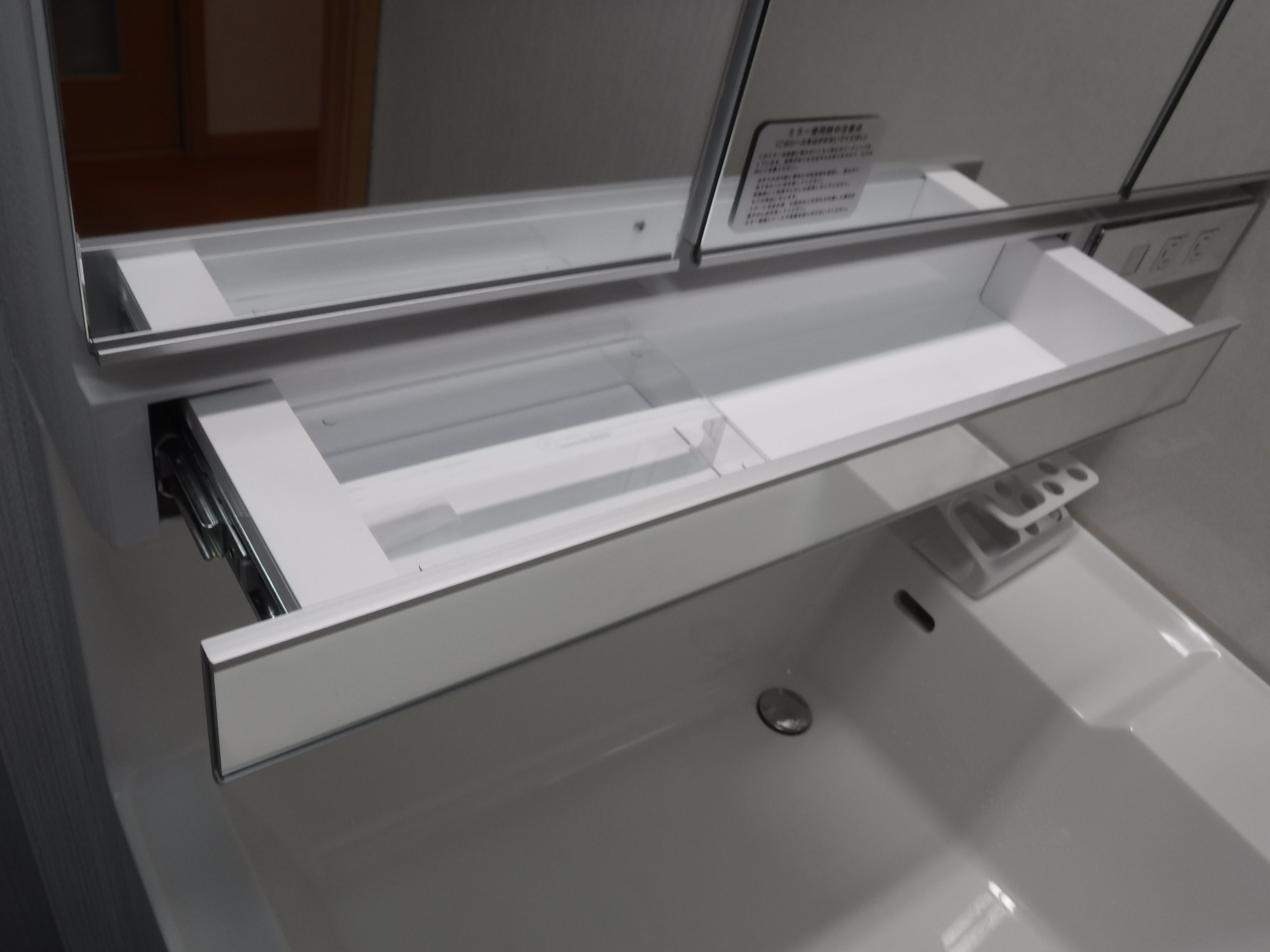 | 工事内容 | 脱衣場全面改装工事 タカラ 洗面化粧台 ファミーユW750 + 内装工事 +洗濯機関連設備取替え |