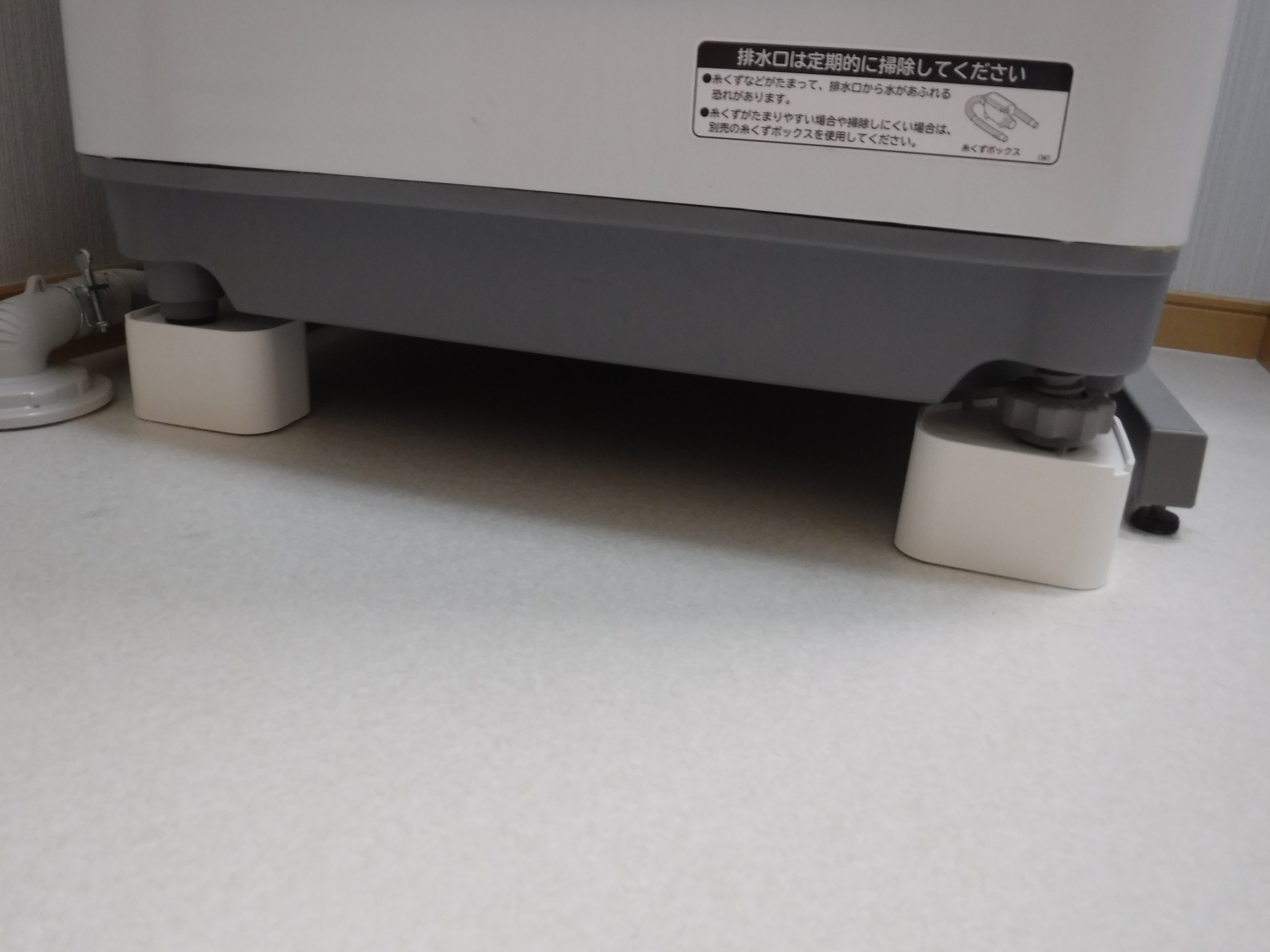 洗濯機が排水管を踏んでしまうので、嵩上げ台を設置しました。