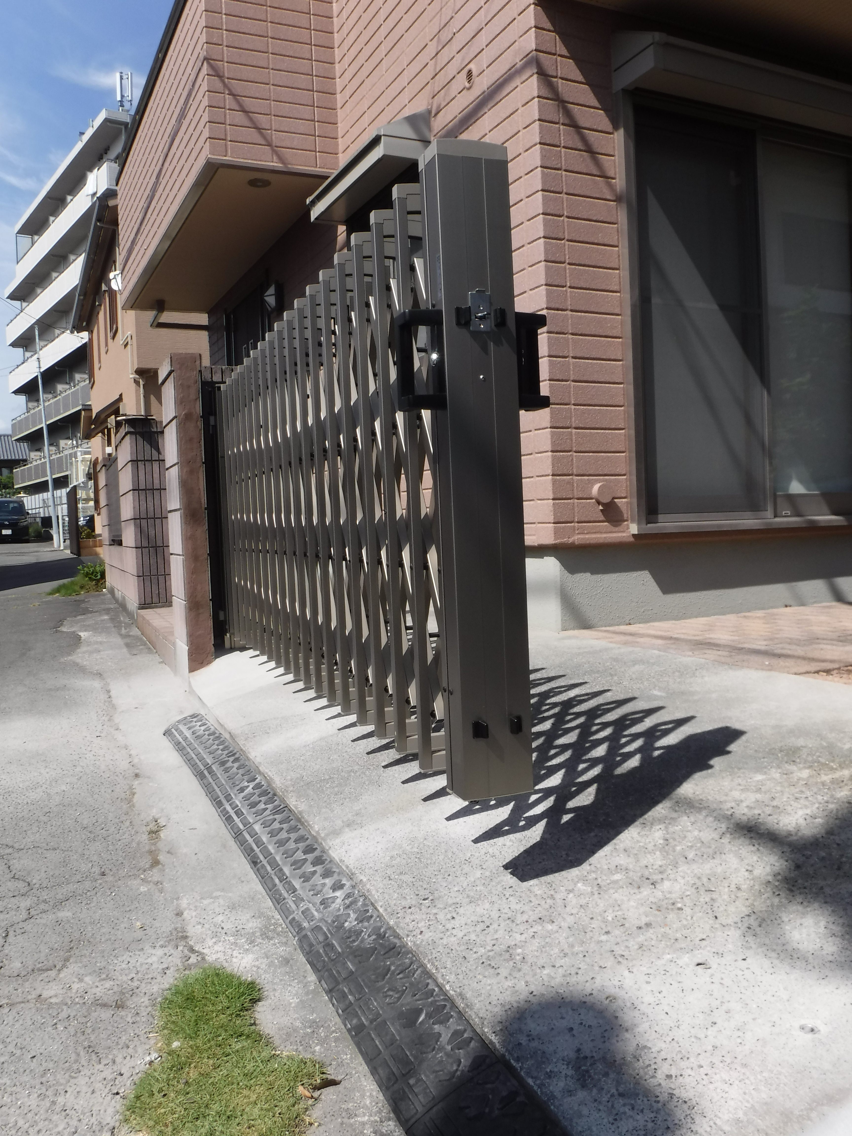 このゲートはしっかりとしていてスゴいです♪しかも軽くて楽に開け閉めできます。駐車場の出入口も拡がって助かりました。