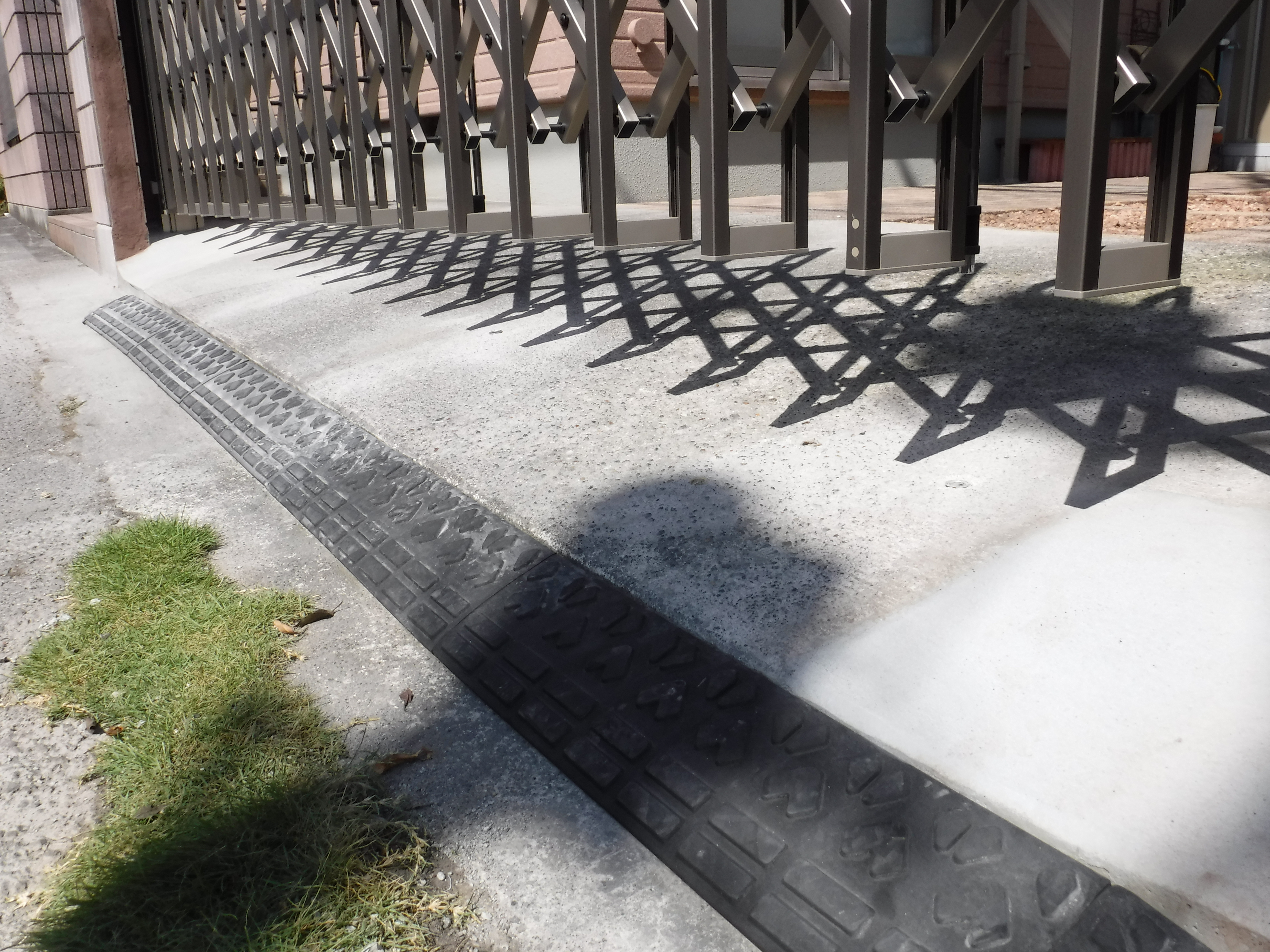 これで車の出し入れがしやすくなり、レールも無いのでゲートがスッキリとしました。