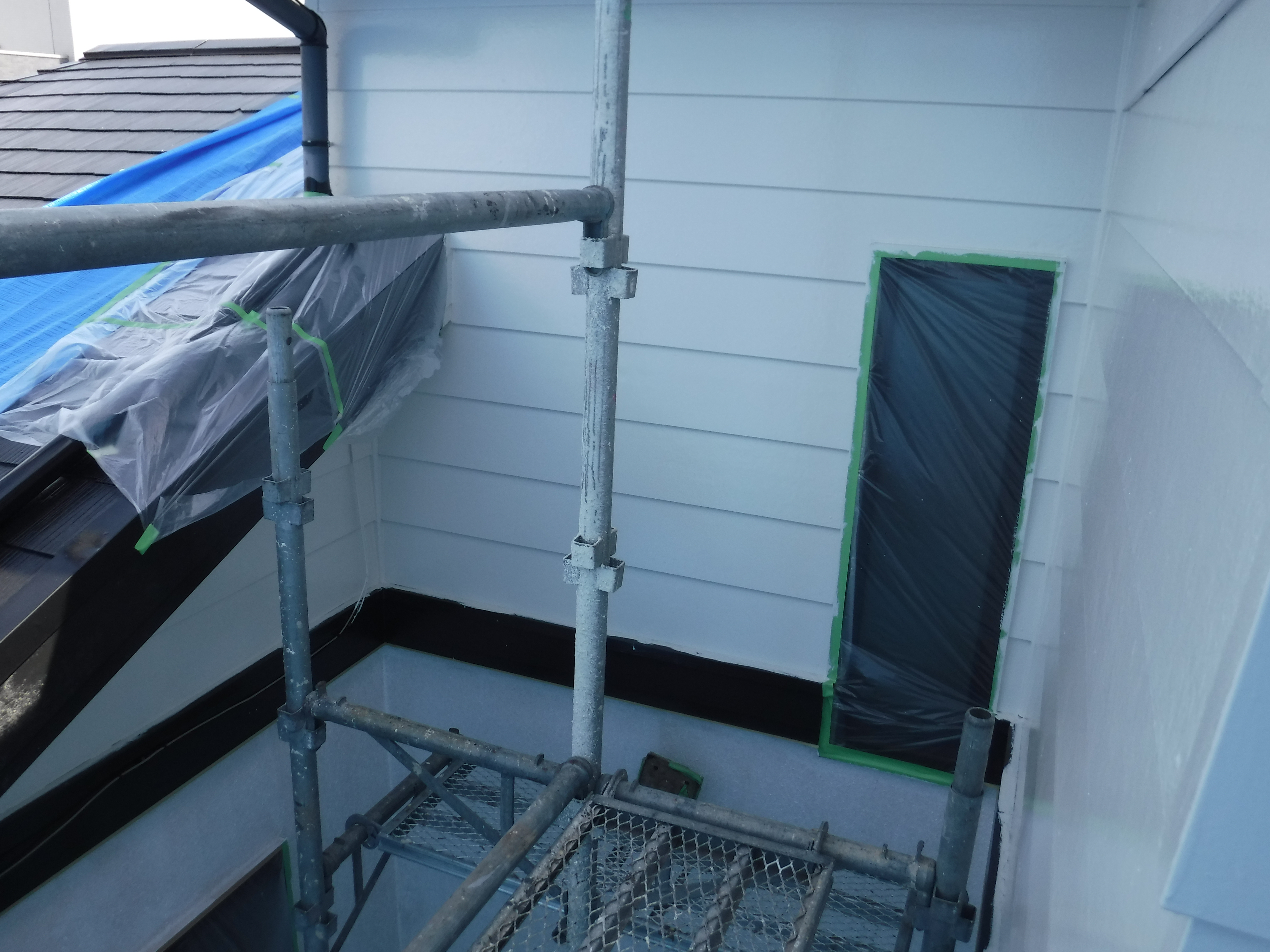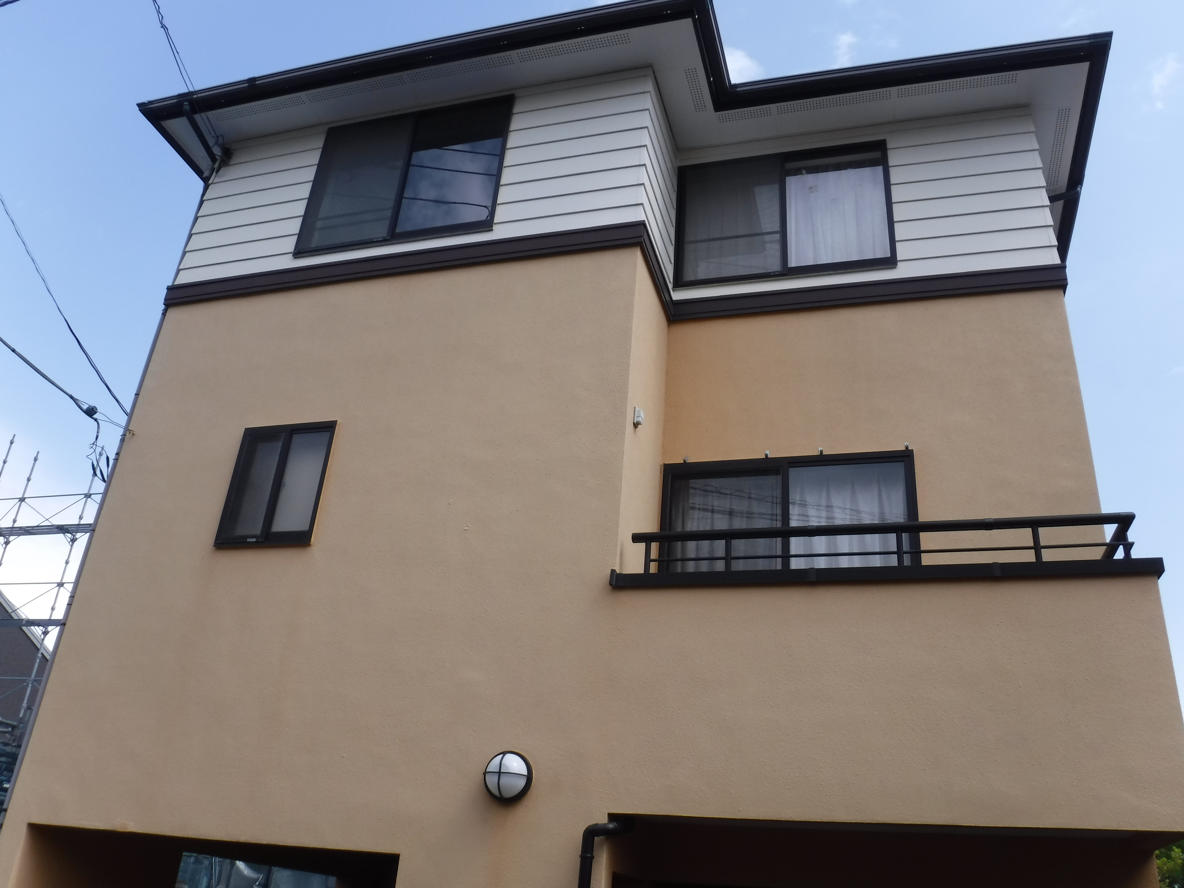 外壁をツートンカラーに塗装することにしました。金額も変わらないので自由に選んでいただきました。理想があったようで・・・楽しく色を決められました。