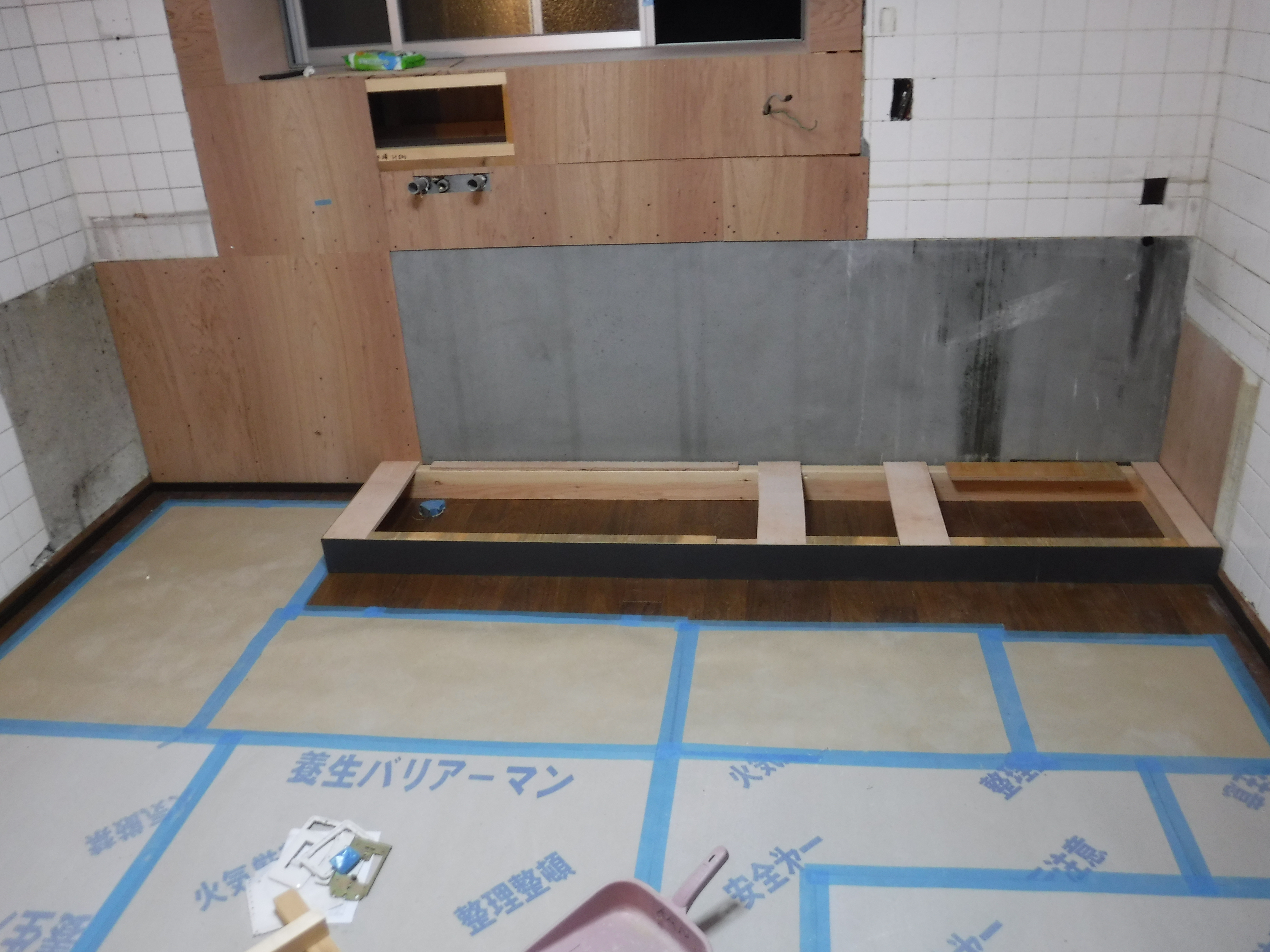 この家で暮らしていくしか・・・キッチン嵩上げ