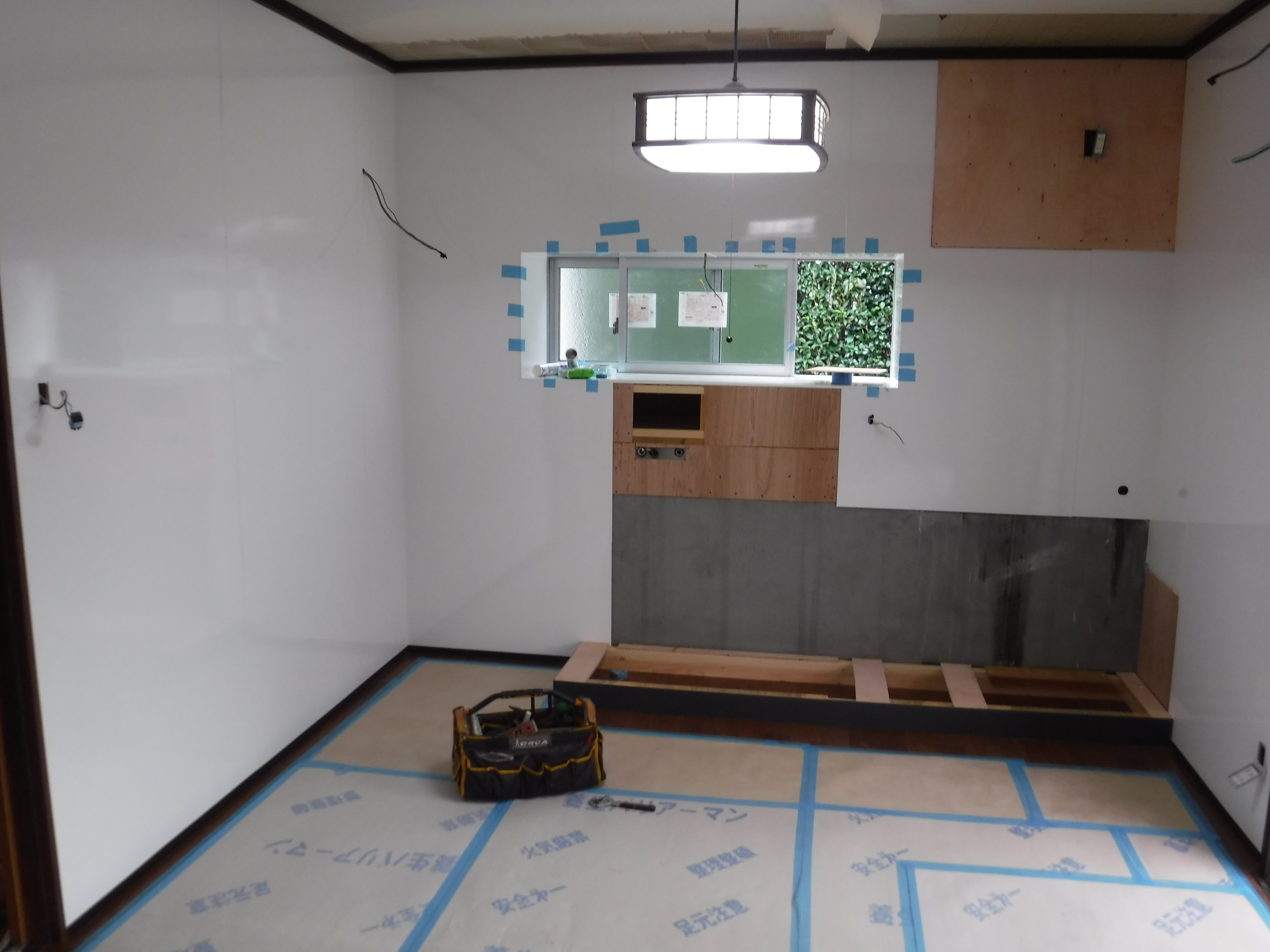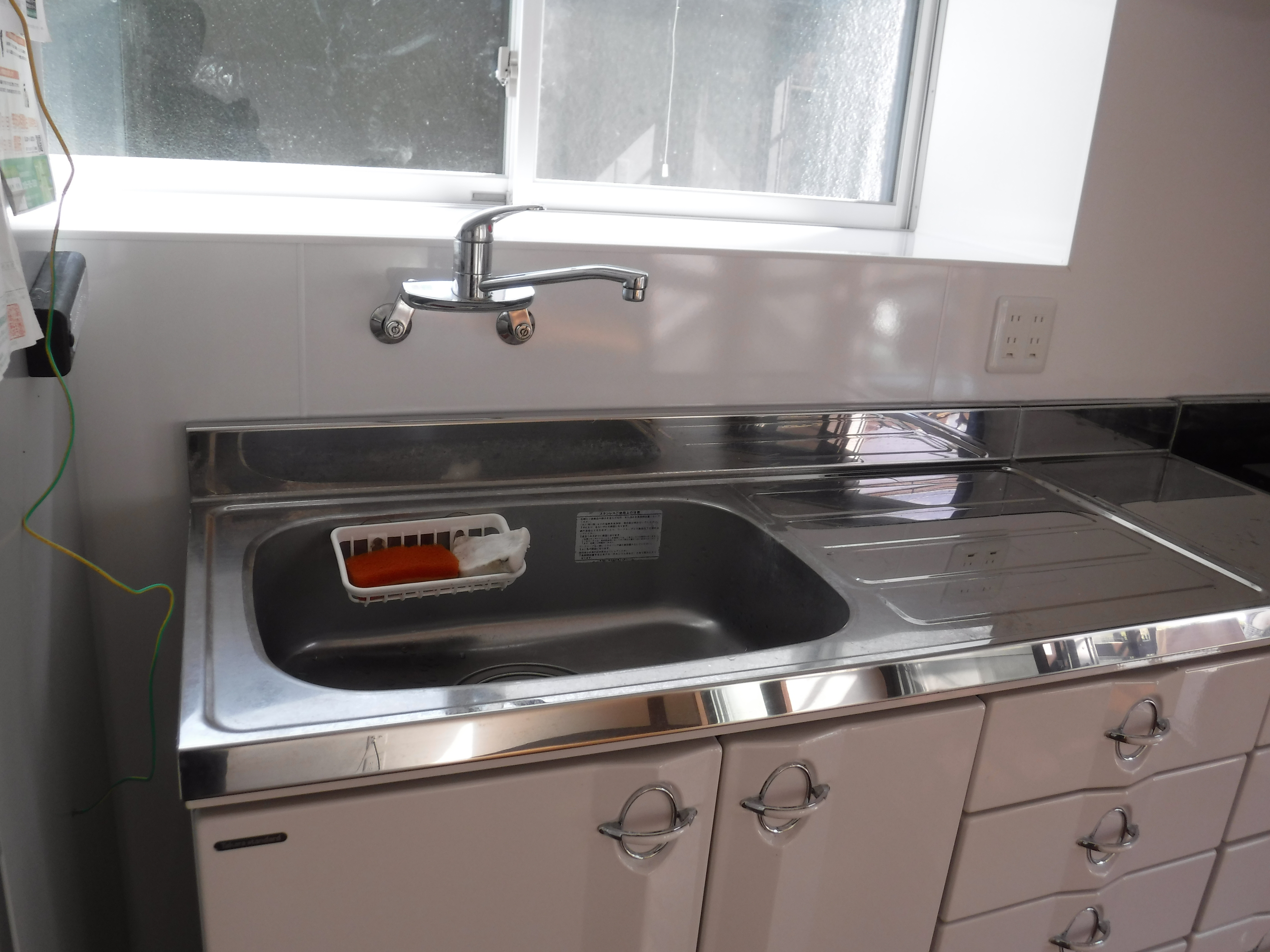 窓の位置を変更しないと、キッチンを嵩上することができませんでした。水栓の位置が低いからです!