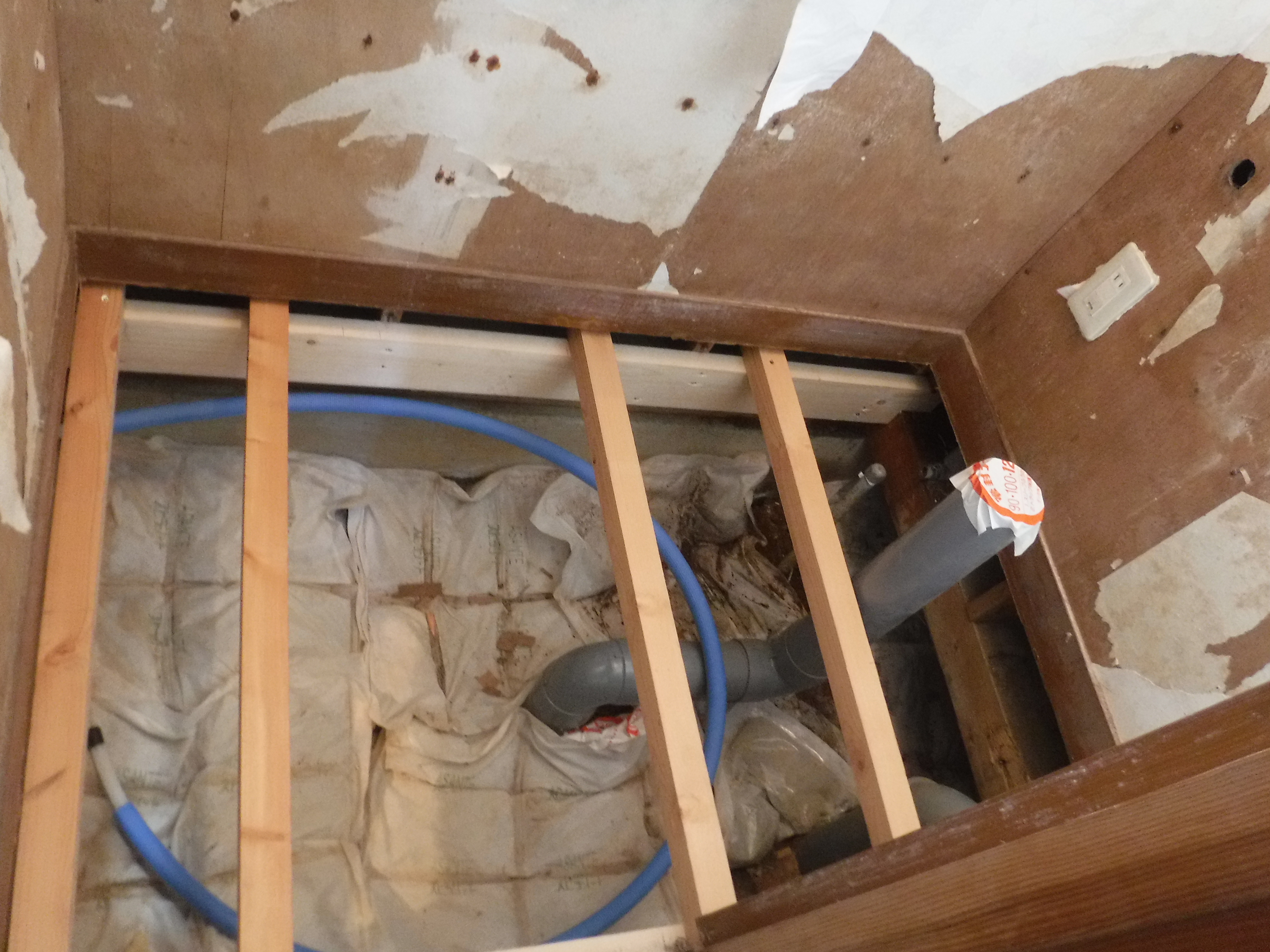 以前から、脱衣場と廊下とトイレの床がブカブカだ!と、お問い合わせいただき検討しておりました。今回の台風で全面改装工事をすることとなりました。ちょうどいい機会ではありますが、予算的に急な出費となったのにも関わらず対応してくださって感謝致します。浴室の工事の途中で水道管がサビていて、噴き出してしまったトラブルがございました。結局、水道管も新しく補修してもらうことにしました。