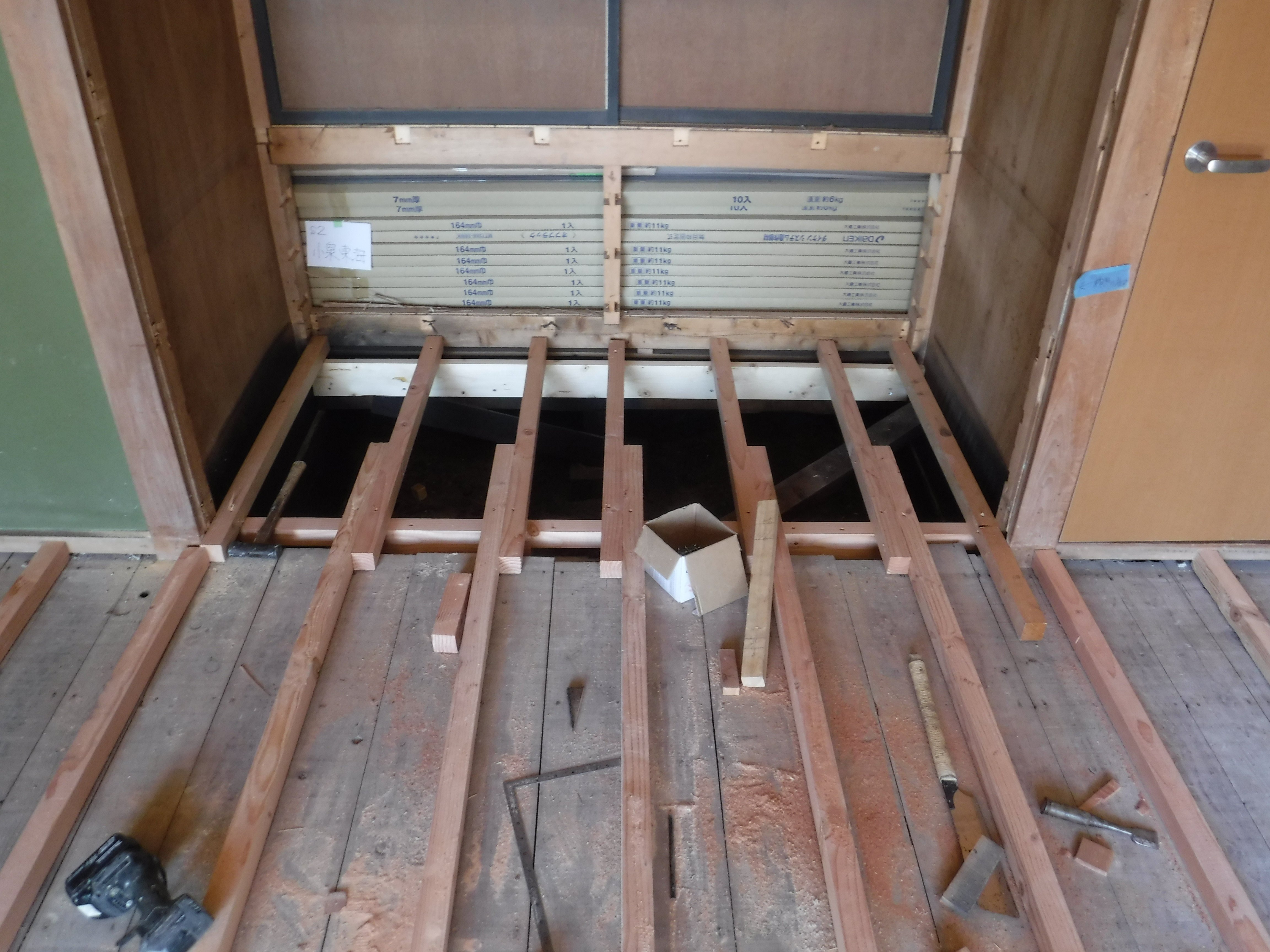 この状態でダイニング側の床として、フローリングの下地を造作します。